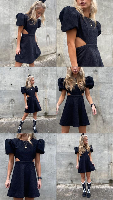 MINI VESTIDO DE ENCAJE CON MANGAS BOMBACHE